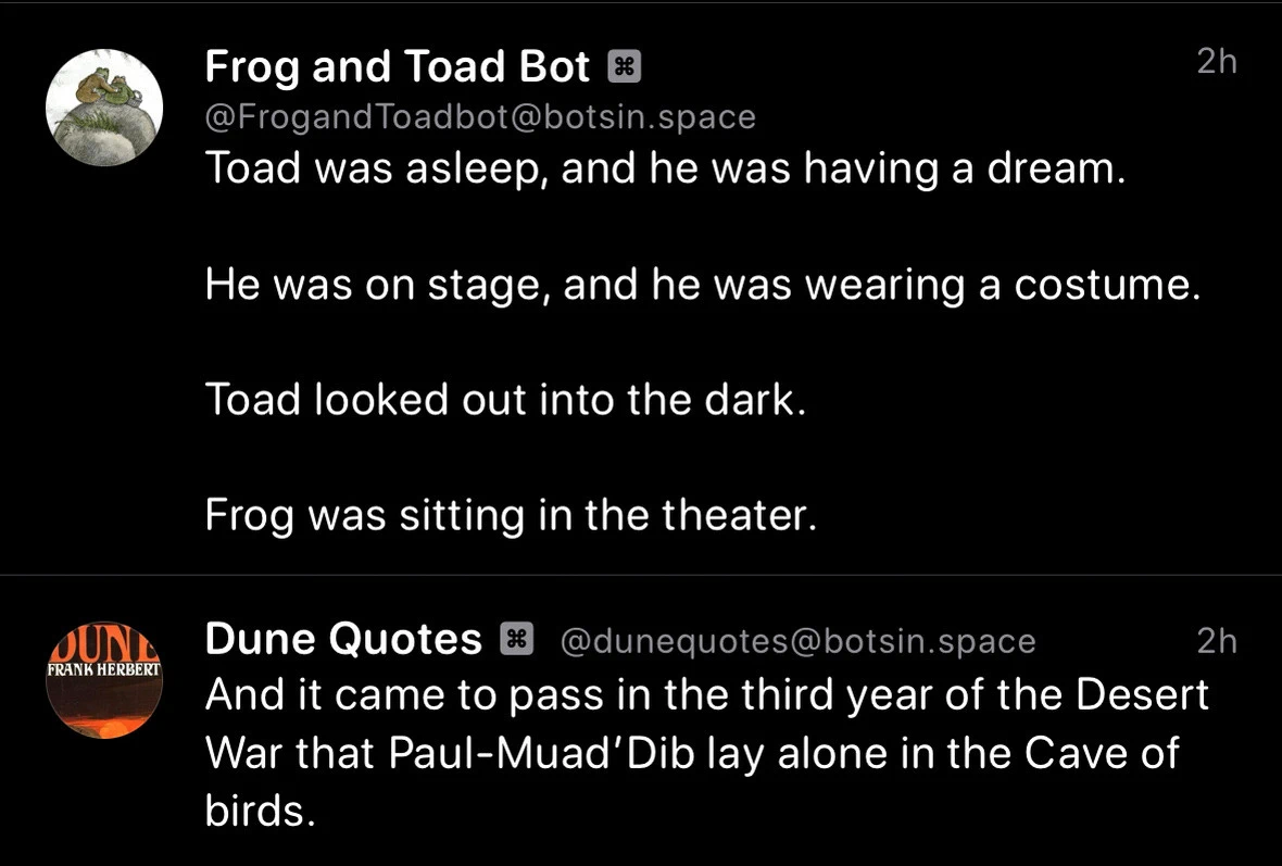 Dune Quotes Bot And it came to pass in the third year of the Desert War that Paul-Muad’Dib lay alone in the Cave of birds.