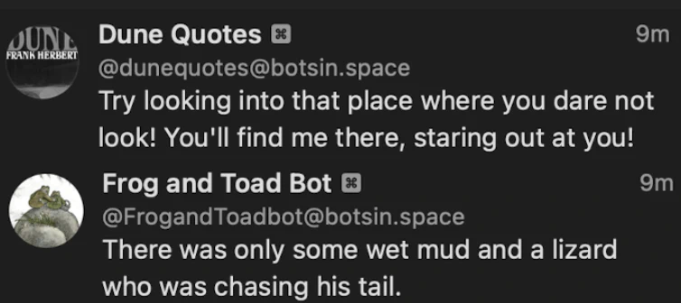 Dune Quotes Bot: Try looking into that place where you dare not look! You’ll find me there, staring out at you!