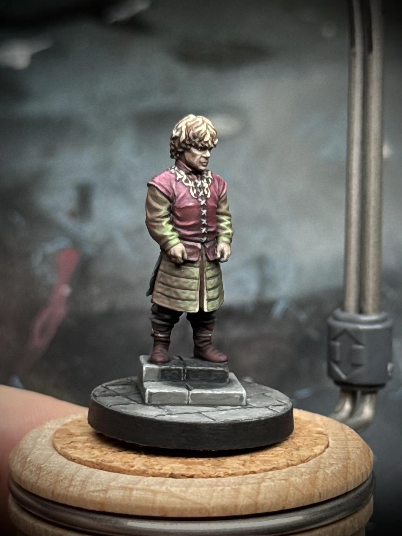 I added an attempt at a cast shadow on the base, trying to emphasise that I want the scene to read as though lit from a shaft of light above, but I hated it so much that I set it aside for a full week 😅 I think it’s just far too extreme, I’ll try to soften it and lighten it to recover.