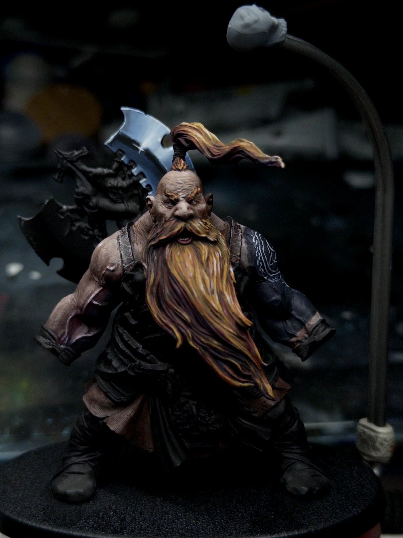 In this shot the upper blade has been sketched in, it’s a bit too blue and not quite bright enough at the brightest point. It also definitely reads a bit ‘fantasy comic illustration’ rather than ‘real’. Which isn’t bad necessarily, but doesn’t quite fit the rest of the mini.